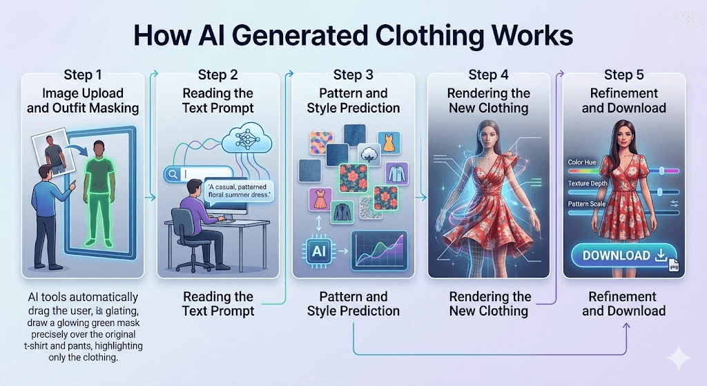AI generated clothing is changing how outfits are designed, visualized, and evaluated before purchase. By using artificial intelligence to create realistic garment previews, users can experiment with styles, fabrics, and complete looks digitally. This helps shoppers and designers make faster decisions, explore more creative options, and reduce uncertainty before buying or producing clothing.